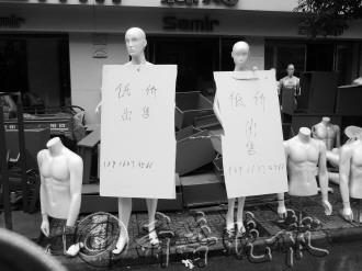 时间:2013年7月29日 地点:市中区 自述:都要被人卖了,模特模型还在那里帮忙宣传,真可谓是最敬业的“员工”了。 作者:韩微