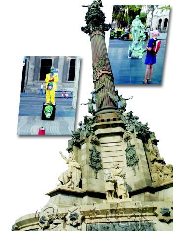 本报特派记者 胡建明 7月31日发自巴塞罗那 去看高台跳水的路上,经常会路过巴塞罗那一个著名景点——哥伦布广场。这个广场是为纪念意大利航海家哥伦布发现新大陆而建的。 广场中最醒目的就是竖有哥伦布雕像的圆柱形纪念碑——哥伦布左手抱着马可·波罗游记,右手很霸气、很豪迈地指着远方,仿佛在告诉所有人——看,那是新大陆!这个圆柱形纪念碑全部用赭红色大理石建成,塔身高达60米。每次站在下面向上仰望,我都会有一种爬上去看看他所指方向的欲望。 从人类历史发展的进程看,哥伦布的壮举,至少让你知道了,人生还有很多等着你去结识的小伙伴们。如果要装高深地把哥伦布的壮举上升至精神层面,那就只能说,哥伦布是在鼓励你要有创新精神,要勇于去探索新世界、新生活。 紧挨着哥伦布广场的是巴塞罗那著名的流浪者大街。在这条街上,每天都有若干名行为艺术者站在那儿摆着不同的造型,等待着游人的施舍。阳光之下,他们同样汗流不止。难道他们从来就没有被哥伦布启发着去寻找属于自己的幸福生活? 在他们看来,适合自己的生活就是幸福生活,什么探索、创新、奋进这些所谓的精神食粮,都是骗人的鬼话。既然站街能解决温饱问题,为什么还要出去劈波斩浪,陪着大鲨鱼穷开心呢?