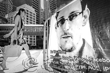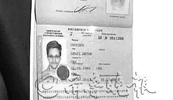 | 一位女士走过街头印有斯诺登照片的海报。 (资料片) |  | 斯诺登的临时避难证。 |