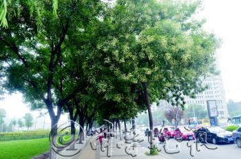 | 雨季到来,国槐进入了盛花期,不同路段国槐花期和花量不尽相同。