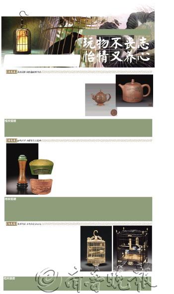 五色土—— 紫砂的泥料 养鸟耍虫、赏花品茗,或聆听悠扬的音乐、欣赏优美的图画等雅趣,都有利于在长夏调节精神,保持心情舒畅。 据说,“心静自然凉”这种现象是有科学根据的,只要保持心境平和与豁达,自然会有丝丝凉意从心中散发出来。因而外界的温度高低不重要,最重要的,是有一颗在盛夏酷暑和繁杂事物中,依然向往恬淡、自由、快乐生活的心。 □王迁 说到茶,就不能不说到茶具。近年来,随着越来越多的人加入到饮茶大军中,对于茶具的研究与收藏,成为了很多追求健康、休闲的年轻人的首选。喝茶,渐渐取代了喝咖啡,成为了不少年轻人的首要饮品。在笔者看来,唯有淡淡的茶香,才是中国人的口中真味。 说到中国名茶,真是太多太多了。分白、绿、青、红、黑、乌龙、花茶等大类。龙井、毛峰、瓜片、竹叶青、猴魁、武夷红茶、普洱等名茶大类。而每一个名茶大类中又有不同产地的区分。 铁观音近十年来着实火了一把,喝铁观音的人越来越多,茶具也有紫砂、玻璃、白瓷等不同材质。铁观音在笔者来看,正炒做法的高山茶最为极品,其他诸如消青、拖酸等工艺制出的茶叶,实在是入不得资深茶友的法眼。而现在市场上大多数是消青、碳焙茶。味道先声夺人,但是余韵不足,三泡之后再无滋味,水味上泛,只能倒掉。正炒的传统,加上叶底的基础,能做出“七泡有余香”。茶中无“味”但“韵”气冲天,这才是好观音! 就茶具一项,笔者这里再赘言几句:茶具之初衷,在于保持茶的原味;更高者,在于提升茶的余味;最高者,还在于升华茶的艺术价值、美学价值、哲学价值。好茶要有好茶具来配。一饼上好的普洱,讲究的人,等一把好壶来泡,好壶不到手,这饼茶永远不拆。朱泥、紫泥、底槽清、段泥等紫砂壶,各自泡不同的茶品,方能发挥最大的效力。 ▼蒋蓉制紫砂壶 ▲紫砂醉酒纹壶 ◤烫花白虫葫芦 ▼天津黄铜拉子 ▼天津白铜拉子 清 象牙雕鸟笼 清 竹编嵌象牙鸟笼 文白灵 武画眉 宜兴丁蜀镇,紫砂原产地。笔者老家便是丁蜀镇大木桥人,家中亦有紫砂从业的亲戚。在老人们口中得知,紫砂一厂、二厂,用的是黄龙山的紫砂料。黄龙山原来是座真正的山,现在是个大坑,但依然在开矿取石磨砂。紫砂又叫五色土,开矿出来是石头,放在一边自然风化为土,是介于石性与土性之间的砂性特质。色母粒等特征明显,配合高温烧制,透气保水性皆为茶具之最,是适茶性最好的茶具。紫砂中,朱泥、紫泥、段泥、底槽青泥等特征各不相同,适合泡制除绿茶外的所有茶品(绿茶最好用玻璃杯)。各紫砂泥料烧制后颜色不同,又是“花货”大师们手中的好素材。 在孩子们暑假还不懂得上网、打游戏的那个年代里,每到8月中下旬,便是捉蟋蟀、斗蟋蟀的日子。那时的孩子,主要是男孩,在那个季节几乎都在养蟋蟀。在茶杯里砸上一些土,喂一些大米粒。再者就是用玉米粒,泡开后喂蟋蟀吃。而孩子们手中的蟋蟀,也大多是在墙根、花坛、拆迁的乱石堆缝里捉的。 而这里要讲的,则是延续一千三百余年、兴盛于文人玩家间的蟋蟀文化。 文人养蟋蟀不能不讲时令,立秋时节,蟋蟀最后一次蜕皮已完成一段时间,开始逐步鸣叫,这时候的蟋蟀就比较容易捕捉了。但是,在伏季成熟鸣叫的蟋蟀斗性并不旺盛,俗称“伏鸡”。所以,立秋之后的几个节气对于蟋蟀来说就尤为重要了。处暑、白露、秋分,每个节气选择“捉”还是“养”抑或是“配”,都有学问。一般来说,古法是将白露前后作为出斗时节。蟋蟀的斗龄各不相同,但大多在半个月左右。 蟋蟀罐也有讲究,中国斗蟋始于唐宋,宋人贾似道实为一代名家,但因斗蟋误国。后明代清代,大量蟋蟀罐开始制造,万礼张、赵子玉,都是当时的制盆名家。现在,一只万礼张蟋蟀盆可遇不可求,千金也难买。清人赵子玉的罐在北京地区也难大量见到。即使是50年以上的老仿,价格也不菲。 解放后,鸣虫、尤其是蟋蟀文化起起落落。近三十年来,开始复兴。柏良、肖舟、火光汉等老一辈蟋蟀名家纷纷著书立说。其中,柏良先生是济南人,民国生人的他在选、养、斗上无所不精。济南绘画大家黑伯龙先生也是蟋蟀痴,家里每年秋天都养十几桌(一桌24盆)蟋蟀,蔚为壮观。京剧大家孟广禄,祖上是份虫(人工孵化)名家,自幼喜好蟋蟀,不仅选、斗,而且家中珍藏的老盆也是重量级的。济南是山东虫的集散地,山东虫历来以虫硬闻名,上等好虫在济南打包,沿京沪铁路运往上海杭州等地著名斗场,支撑起了一个庞大的海派蟋蟀文化。 蟋蟀文化,古来至今洋洋文献如海,非三言两语能说尽。目前济南的虫市仅存英雄山早市上的一排地摊,魏家庄、凤凰山、成丰桥等虫市都已没落,但随着传统文化的复兴,济南作为蟋蟀界重镇,定能恢复往日繁荣。 竹蛉盒:海派虫具经典造型,金钟、马蛉使用高盒,墨蛉、竹蛉、蚁蛉等使用扁盒。虫盒以榫卯、铰链等传统竹制工艺着为上佳。配有牙窗、牙板、白玉、玛瑙食碗为极品。海派名家众多,近年来,机制盒大量充斥市场,使价格大幅下降。 蝈蝈葫芦:京派虫具,清末名家范制的百年葫芦,价格能达到几十万。葫芦集保温、出叫、把玩等功能于一身。深受北方虫友喜爱。 拉子:经典津派,仅流行于天津等地。深受天津人民喜爱的拉子,以白铜、黄铜做成,配有玻璃小窗,形状贴合人体,放在衣服里起保温作用。 叫筒:海派虫具代表,竹制为主,近年来,葫芦