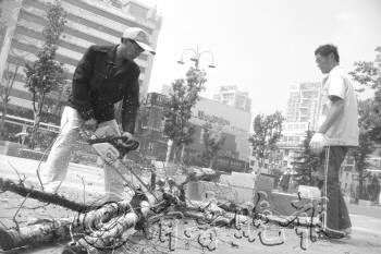 | 园林工作人员正在处理枯死的树木。 本报记者 李静 摄 |