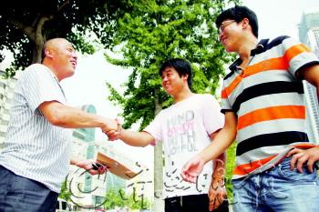 本报热线6610123消息(见习记者 韩逸) 8月1日下午2点,来自栖霞桃村的戴建光、戴子杰两个小伙子在亚细亚大酒店附近捡到了一个档案袋,内有身份证复印件等证件和一串新房钥匙。两人通过里边物业公司的电话查询到失主孙进京的联系方式,半小时内就等到了激动万分的失主,并物归原主。 8月1日下午2点左右,戴建光和戴子杰走到南大街亚细亚大酒店附近,看到地上有一个档案袋。本来以为是空的,不小心踩了一下感觉有硬梆梆的东西。俩人捡起来打开一看,里面是各种关于房屋入住的证件,包括失主孙进京的身份证复印件、房屋入住通知、装修管理协议、交房证明等等,甚至还有一串新房的钥匙。 “丢了这么多证件,还有新房钥匙,失主肯定急坏了。”戴建光找到了协议内物业公司的电话,咨询到户主孙进京的手机号码,及时联系到了失主,俩人就在大太阳底下等着。 半小时不到,孙进京就赶了过来,刚下车就握住了两位小伙子的手。“真是多亏了你们!”孙进京说,因为拿到了新房钥匙,心里高兴,中午和朋友多喝了两杯扎啤,有点晕乎。加上买了很多其他的东西,档案袋夹在胳膊肘里掉出去了。为了报答两位拾金不昧的小伙,孙进京执意要请二人吃饭,但被婉言谢绝了。 失主孙进京激动地和两个小伙挨个握手表示感谢。 见习记者 韩逸 摄