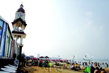 | ◥第一海水浴场利用瞭望塔观测游客情况,用来预防紧急情况的发生。 实习生 许广强 摄 |