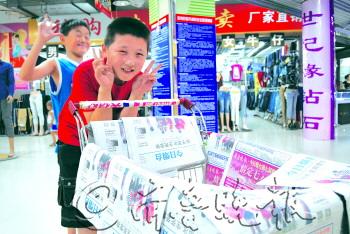 本报8月1日讯(记者 曲彦霖) 早上五六点钟,当其他孩子还沉浸在睡梦中,小报童们已经走在街头巷角。陈俊良就是其中之一,他还给自己设了一个目标,要打破上一期的卖报纪录。 “我昨天拿了400份,今天又拿了400份!”陈俊良因去莱阳亲戚家错过了第一期的报名,回来后跟好友宋朋试卖了一天,觉得很带劲,也越发感到错失了机会。 报名后,陈俊良每天都很忙碌,胳膊多了块淤青,行程也排得满当当。 早上5点半从珠玑取报纸,6点到汽车总站,8点再赶到开发区美特好超市,“昨天一直卖到下午3点才卖完。”陈俊良的神情尽是疲惫。 机灵的他还找来超市购物车,把报纸铺展开放在车筐边,一边推着车一边吆喝,“卖报啦,今天的报纸!”这让他省下不少力气,大嗓门也引来不少人的注目。 商场、超市里的工作人员和常来逛的市民,对这个开朗的男孩子并不陌生。这几天,他还在商场里设了个“大本营”,“眼镜店的叔叔让我进店凉快,我一去他就开空调。”陈俊良的报纸也放在眼镜店里,累了、热了就找老板唠唠。 休息了一会,小家伙来了劲儿,“明天我还要400份!”陈俊良自信满满地说,这次就是冲着第一名来的,而且要打破上一期第一名的纪录。