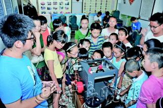 本报8月1日讯(记者 王震 见习记者 孙丽娟) 28日,本报小记者体验活动安排在了北门外社区居委会,小记者亲身感受3D打印技术带来的神奇效果。 张海洋老师首先为小记者们讲解了打印机的工作原理。“在未来的发展中,有可能打印出我们日常所需的生活用品。比如说,你可以足不出户得到一双运动鞋,先是上网下载运动鞋的数据,然后将数据连接到3D打印机上,这样就可以将你想要的鞋子打印出来。”小记者大呼神奇。 由于3D打印机打印物品的时间较慢,张海洋老师和李宁老师事先打印出一些成品模型。面对着眼前的艾菲尔铁塔、弥勒佛、齿轮和杯子等各种物品,小记者们爱不释手。“老师,你能用这台机器打印出一枚钢镚吗?”张老师回答说,“这种行为应该属于犯法。”两人的问答逗乐了大家。“老师,你能打印出大海吗?”方昱涵更是奇思妙想。面对着眼前的机器,小记者们抛出了很多大胆的设想。 参观完成品模型,张海洋和李宁现场演示打印一个小齿轮。首先在电脑上画出平面图,然后将平面图转化成3D图,最后将3D模拟图传到打印机上,进行打印。不到5分钟,一个直径约为2厘米,厚度约1厘米的齿轮,活生生地出现在大家面前。 张海洋老师说,要是没有这样的打印机,想要加工这样一个齿轮,至少需要4天的时间。而现在,利用3D打印机,短短几分钟就能完成过去几天的工作量。