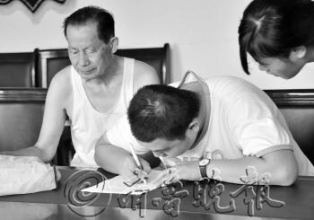| 一位单身青年在家人的陪伴下来报名本报相亲会。 本报记者 邹俊美 摄