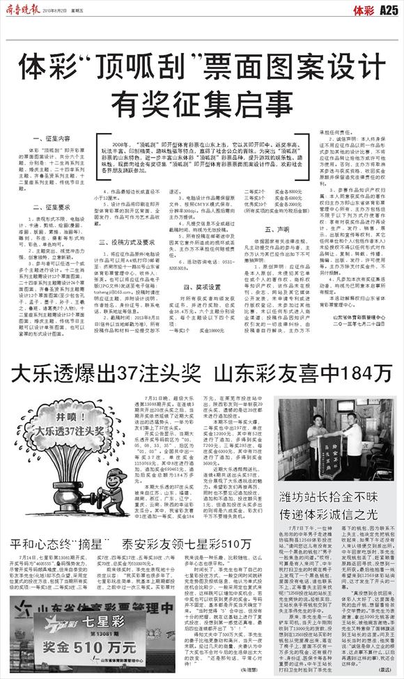 平和心态终“摘星” 泰安彩友领七星彩510万