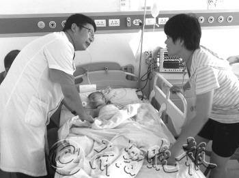 | 2日凌晨,医生对小景辰进行了内脏切除和修复手术。 本报记者 杨林 摄 |