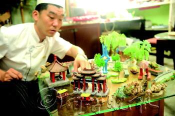 山东大厦一间30平米的地下室,是痴迷泥塑的大厨王令涛的“艺术创作室”。在这里,再普通不过的泥巴、树枝、食盐等,经过王令涛之手,变幻成了大明湖、千佛山、趵突泉等景观。王令涛有个梦想,就是通过自己的作品,让更多的人了解济南,了解山东。 文/本报记者 张泰来 片/戴伟