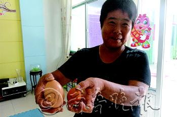 本报8月5日讯(见习记者 杜彩霞)近日章丘市双山街道办事处滕朋村的赵香云遇到了一件稀奇事,她家的鸡下了一枚三两重的巨型鸡蛋。 7月27日,赵香云像往常一样去养殖场收鸡蛋,发现了一个巨型鸡蛋。“很大,在普通鸡蛋里,有点‘鹤立鸡群’。”更让赵香云一家感到奇怪的是,过了两天,下巨型蛋的鸡又下了一枚二两多重的鸡蛋,赵香云赶紧把这只鸡单独养了起来,观察它是否还会有这样的“大本事”。 8月5日,记者看到了赵香云家的两颗巨型鸡蛋,记者用秤称了一下,两枚鸡蛋分别重三两和二两四,而普通鸡蛋才一两多,巨型蛋是普通鸡蛋的两三倍。赵香云说,“以前见过最大的鸡蛋也就1.8两,是双黄蛋,这么大的真没见过。” 章丘市畜牧局工作人员介绍,这么大的鸡蛋不奇怪,蛋鸡长到一定程度后,虽然生殖系统并未健全,但已开始产蛋,容易产出异常鸡蛋。人们常见的双黄蛋就是在这种情况下生产出来的。随着鸡的正常生长和生殖系统的成熟,这种现象就会消失,赵香云家的这两颗巨型蛋很可能是“蛋中蛋”。