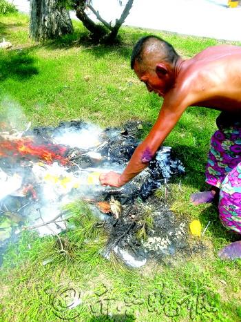 本报热线6610123消息(记者 侯艳艳) “迎春大街芳华园附近绿化带起火,有人在绿化带里焚烧垃圾!”5日中午,市民孙女士拨打本报热线称。记者赶到现场发现,竟是一名男子在绿化带焚烧垃圾做起了烤螃蟹。 5日中午12点半,记者在现场发现,绿化带里黑烟滚滚,一名赤裸上身的中年男子正蹲在火堆旁,用树枝拨动焚烧的树枝和垃圾。路过的市民以为他是环卫工,也有的市民以为他是园林工人,这样做是为了图省事儿。 可谁也没想到,当记者走到男子跟前时看到,男子手里正翻动着两只大螃蟹。这位男子告诉记者,由于家里没锅,他就地取材,在绿化带做起了美味的烧烤螃蟹。男子说着,拿起一只快烤好的螃蟹说,“再过会儿就烤好了!” 12点40分,大螃蟹终于烤好了,男子兴奋地提起两只螃蟹腿,沿马路向东走了,而他身后的绿化带里仍然冒着浓烟,火苗烧得正旺。 中午12点45分,滨海派出所民警接警后赶到现场,用土覆盖了火苗。“这个男子曾有作案前科,精神有点问题。”民警说。