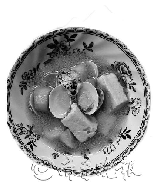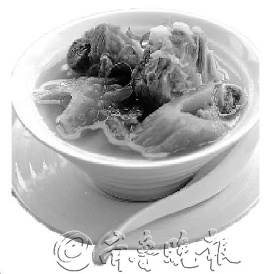 小贴士: 蛤蜊等贝类本身极富鲜味,烹制时不需再加味精,盐也少放些,以免鲜味反失。 蛤蜊丝瓜汤 凉瓜排骨汤 凉瓜也叫苦瓜,有清热解毒,明目,补气益精,止渴消暑的功效。是非常适合夏季食用的蔬菜。但是很多人怕苦并不喜欢吃。加了苦瓜的排骨汤,味道鲜美,清爽不油腻,汤水中没有苦瓜的苦味,反多了一丝清甜,是一道夏天不容错过的滋补祛火靓汤。 材料: 肋排500克,苦瓜一根,姜五片,葱二根,枸杞适量,盐适量,高汤一小勺。 做法: 1.洗净剁好的肋排,泡入凉水中,期间换几次水,将排骨中的血水泡出。 2.凉瓜开边去囊和籽斜切成块,加入盐拌匀腌制备用(这样可以去除掉苦瓜的一部分苦味)。 3.葱洗净打结,姜切大片。 4.将排骨放入滚水中汆烫5分钟,捞出清洗干净。 5.砂锅中放入足量的水,水滚后加入氽好的排骨。 6.加入葱段和姜片。 7.再次滚开后盖上锅盖,用小火煲1个小时左右。 8.待排骨可以用筷子轻松插入后,将腌好洗去盐份的苦瓜加入。 9.加入枸杞再依口味调入适量盐加一勺高汤,再煲10分钟即可,食用前将葱段挑出 TIPS: 1.苦瓜去苦小窍门:撒上少许的盐腌一会或用开水焯一下。 2.挑选苦瓜时以瓜体硬实、表皮亮丽且表面疣状物越大的越好,这样的苦瓜没有那么苦。 3.苦瓜不适合脾胃虚寒者和孕妇食用。 4.这道汤只用姜,葱及盐来调味,不建议放太多香料以免影响原汤的鲜美。 5.煲汤的水量一次要加足,不要中途因水量不足再增加,这样炖出的汤水味道会大打折扣。