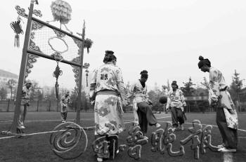 去年,临淄区足球夏令营开营仪式上人们正在表演蹴鞠。(资料片) 本报记者 王鑫 摄