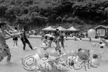 | 齐山景区内,中外游客正在水中嬉戏。(图片由景区提供) |