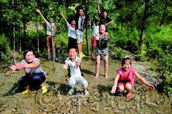 东余粮村的孩子们大喊:“欢迎你们!” 本报记者 姜文洁 摄