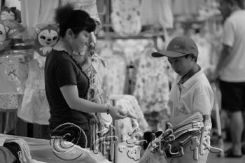 ◤周思辰在向市民卖报纸。 本报记者 王鑫 摄