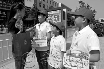 工作人员和小报童们交流谈心。 本报记者 王鑫 摄