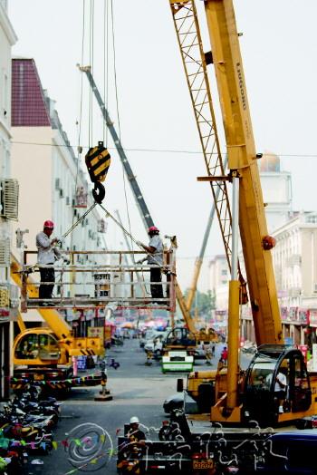 一工地施工现场,工作人员在高温中工作。 本报记者 王鑫 摄