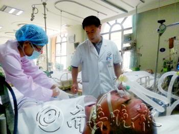 本报8月6日讯(记者 王尚磊 宋佳 通讯员 朱琳) 7日立秋,但6日我省仍处于滚滚热浪中,有工人因长时间在酷暑中作业而患上热射病。聊城一名装卸工冒着高温工作,突然晕倒。一名七旬老人顶着烈日骑三轮车中暑休克。在烟台,一搬运工冒着60℃高温作业12小时,突然晕倒抽搐,被诊断为热射病,一直未脱离危险。 6日,聊城最高温达到35.5℃。下午5时30分,在聊城市人民医院抢救室内,医生正忙着抢救一名重度中暑的装卸工。医生把老冰棍放在这名装卸工的腋窝、腿部、腹部等部位为他降温。“体温40多度,多脏器出现衰竭,已经达到热射病的症状。该装卸工35岁,是聊城城区一家工厂的工人,负责货物搬运。在抢救室,装卸工喘着粗气,胸口起伏力度很大。医生询问时,他已经没有力气回答。当天下午5时50分,这名装卸工被转到医院特护病房。医生表示,病情危重,需住院治疗。 在烟台毓璜顶医院,昏迷的曲兆祥(化名)躺在病床上一动不动,肢体僵硬,血液透析科的医护人员正在为患者透析血液中的代谢物,同时将回血温度调到30℃,“有助于帮助内脏降温”。 曲兆祥是烟台一家劳务公司的员工,负责为船舱搬运货物,由于近日高温,舱内温度有时高达60℃。5日下午3时,曲兆祥突然晕倒在地,并不时抽搐,工友们见状迅速将他送往附近医院。“患者刚送到医院时,体温高达42℃。”毓璜顶医院急诊ICU主任医师刘岗介绍,患者被诊断为热射病,幸亏抢救及时,患者得以支撑到现在。患者已经出现脑水肿,但今天有少量尿液排出,说明肾功能损伤不大,但情况仍不容乐观。
