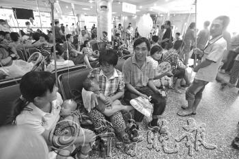 6日,济南儿童医院输液室里挤满了孩子和家长。连续高温,该院每天接诊量达到3000多人次,比平时增加了10%以上。 本报记者 左庆 摄