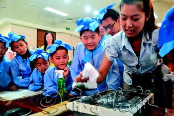 本报8月6日讯(记者 赵伟) 6日上午,2013年环卫工子女夏令营启动仪式举行,宣布将近一个月的夏令营活动正式起航。在首日活动中,环卫工子女体验了中华传统文化。 为了让环卫工子女过一个快乐而又有意义的暑假,6日上午,关爱环卫工子女夏令营活动正式启动。活动启动仪式后,20多名环卫工的孩子就来到济南市妇女儿童活动中心,参观了中华传统文化体验基地。观看孔子像、观赏古典编钟、挥毫体验中国书画,亲手制作碑拓,观看茶艺表演……在一项项丰富多彩的活动中,孩子们感受到中华传统文化带来的惊喜与乐趣。 10岁的司志豪称,他是第一次参加夏令营活动,感觉很新奇,也学到了很多知识。“特别是那个碑拓制作,感觉非常好玩。” 夏令营活动不仅让孩子们受益,一些参加活动的环卫工也非常欢迎。有的家长称,他是带孩子第一次参加夏令营活动,感觉活动很丰富,平时也不能带孩子到处玩玩,这次活动让他们省心了。 “关爱环卫工子女”主题夏令营活动从8月6日起至8月末,每周都将安排丰富多彩的活动,包括看电影、外出旅游、体验高尔夫等,让孩子们在此次活动中开阔视野,增长见识。 在夏令营启动当天,济南市城管局还举办了社会各界慰问环卫工活动,来自机车新村学雷锋爱心小组的热心人士为此次夏令营捐款2000元。