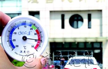 下午2点,烟台人才市场门口的温度为38℃。 实习生 卢昌胜 摄