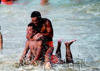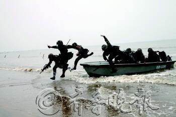 |  | 水中练习格斗,对于增强军事素质具有重要作用。