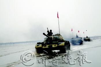 |  | 海训场上,装甲冲锋训练。 |  | 比武小竞赛中夺得名次,战士们在兴奋地庆祝。 |  | 海训部队正进行抢滩登陆训练。 |