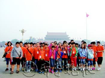 | 去年夏令营时孩子们在向往的天安门前合影留念(资料片)。 |