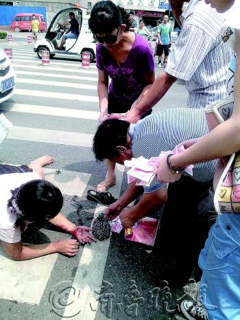 女子被撞伤,两万多现金散落一地