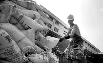 | 8日,烟台一搬运工正在搬运化肥,汗流浃背。 本报记者 李泊静 摄 |  | 一上午下来,工人衣服拧出水来。 本报记者 李泊静 摄 |
