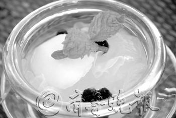 原料:水发银耳50克、芦荟10克、雪梨12克、黑珍珠5克、纯净水100克、冰糖5克。 1.将黑珍珠飞水备用。 2.将银耳、芦荟、梨放入盆中加冰糖,水蒸2小时,放入黑珍珠即可。 特点:护肤润肺,口感爽滑。 Tips 银耳中含有一种重要的有机磷,具有消除肌肉疲劳的功能。它被人们誉为“菌中之冠”,既是名贵的营养滋补佳品,又是扶正强壮之补药。历代皇家贵族将银耳看作“延年益寿之品”、“长生不老良药”。银耳多糖具有抗肿瘤作用;还有祛除脸部黄褐斑、雀斑的功效;银耳中的膳食纤维可助胃肠蠕动,减少脂肪吸收,从而达到减肥的效果。