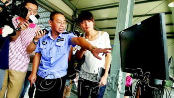 | 民警讲解汽车尾气排放指标。 董钊 摄 |