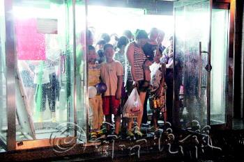 | 8日晚8点,伴随着电闪雷鸣,烟台市区范围内下了一阵急雨,市民猝不及防。 本报记者 韩逸 摄 |