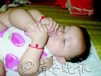 作品描述:妈妈还没把奶冲回来,饿坏小p孩我了,先啃个脚丫子顶顶吧。