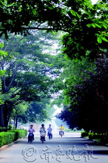 | 8日,市民从绿阴夹道的康博大道上路过。 本报记者 马志勇 摄 |