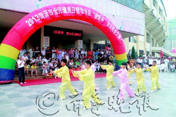 8月8日是第五个全国“全民健身日”。当天上午,2013菏泽市全民健身日暨牡丹区“健康杯”全民健身大展演在西关体育场举行,来自牡丹区42支队伍的1000余人参加了展演,共涉及武术、秧歌、健美操、太极拳、舞蹈等项目。