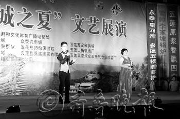近日,五莲县委宣传部、广播电视局联合举办的消夏晚会,在五莲广场举办,每晚一场,活动持续近一月。图为五莲检察院干警演唱歌曲《家在心里》。 本报记者 王裕奎 通讯员 张鑫 摄影报道