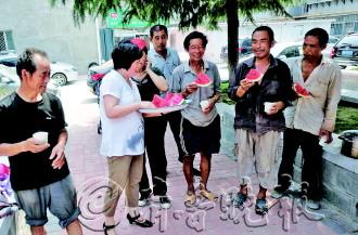 8日上午,环翠楼办事处红光、胜利、西北村三社区为辖区旧生活区改造工程的农民工及物业工人送去绿豆汤、西瓜等解暑食品,并采购一批藿香正气水等药品以备急用。