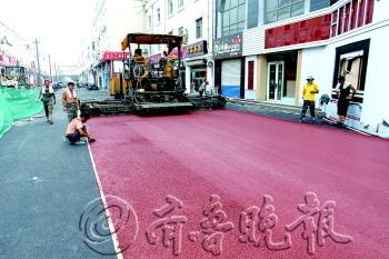 红黄绿三色组成 稳定、抗水、耐久 8日上午,记者在张店新世界商业街看到,施工现场正在铺设彩色沥青混凝土,有红黄绿三种颜色。 据了解,彩色沥青混泥土铺设范围为共青团西路到商场西路路段,路段长度约260米,铺设总面积约4000平方米,分红、黄、绿三种颜色。这是淄博市首次将彩色沥青混凝土用于城市道路。铺完后路面将多姿多彩,赏心悦目,美化了城市环境,将成为城市一道靓丽风景。据施工人员介绍,预计再有五六天,沥青路面就可以铺好了。 虽然彩色沥青混凝土路面的造价稍高于普通路面,但彩色沥青混凝土除具备普通沥青混凝土的特性外,还具有高温稳定性、抗水损坏性、耐久性和良好的弹性和柔性的特点。随着工艺的发展和技术的成熟,彩色沥青混凝土在未来道路建设中将越来越多地被使用。 易清洗,可吸音 有更好的脚感 据了解,彩色沥青混凝土路面有很多好处,易清洁且不会掉色。 记者询问施工人员得知,新铺设的彩色沥青混凝土路面在不同的温度和外部环境作用下不会出现变形、沥青膜剥落等现象,与基层粘结性良好。色泽鲜艳持久、不褪色、能耐77℃的高温和零下23℃的低温。另外还具有较强的吸音功能,汽车轮胎在马路上高速滚动时,不会因空气压缩产生强大的噪音,同时还能吸收来自外界的其他噪音。具有良好弹性和柔性,“脚感”好,冬天还能防滑。因为新世界商业街改造完成后不再允许车辆通行,只作为步行使用,良好的脚感可以使市民获得更舒适的逛街体验。 现场工作人员告诉记者,这种沥青路面非常好清洁。在铺设完成的路面上,记者尝试在脏的地方洒上了一点水,又用布用力擦了几下,脏东西去除了。
