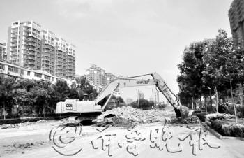 | 8日,向阳路以西的振兴路上,有两辆挖掘机已经开始工作。 本报记者 邹俊美 摄 |  | 振兴路和向阳路路口东已经封路,不时有车辆从开口处经过。 本报记者 邹俊美 摄 |