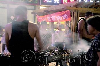 | 烧烤摊旁,慧慧的爸爸忙个不停。 实习生 卢昌胜 摄 |