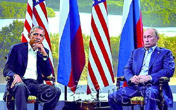 | 8月9日,奥巴马在白宫举行的新闻发布会上发表讲话。新华社发 |  | 在6月召开的八国集团峰会上,奥巴马和普京会面“冷冰冰”。 |