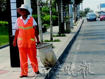 虽然是清晨,但记者已经感到气温来势凶猛。记者跟着环卫工人窦大姐开始了她一天的清扫工作。头戴草帽、身穿橘红色工作服,一张黝黑的脸上汗珠不断地流下,虽然带着遮阳帽,还是抵挡不住滚滚的热浪。54岁的窦大姐是白泉村人,从事环卫工作已经两年多了,每天天不亮就要起床,日复一日的从事清洁工作。 “每天工作八小时,从上午五点工作到十点,下午从一点半到四点半,主要负责双山大街从经十东路到龙泉大厦这一段的地面和沿途的垃圾桶。”窦大姐一手拿着簸箕,一手拿着扫帚,一遍遍地重复着低头、弯腰的动作,清理路边的垃圾。窦大姐说,这一段路虽然不是很长,但作为进入章丘市区的门面,自己还是很重视这块的清洁。窦大姐告诉记者,夏天气温高,最头疼的就是道路上有很多扔的一次性餐盒,很容易腐烂,还散发着难闻的异味,每天都会清理不少这样随手丢弃的餐盒。 “每年单位都会发一些防中暑的药品,有时还会发西瓜吃呢。”窦大姐知足地告诉记者,前几天看到了河南环卫工中暑去世的新闻,自己非常注意,也学会了一些防暑的方法。“虽然赚钱不多,但既然是工作,就要努力地做好。”打扫了几步路,窦大姐放下手中的活儿,擦了擦汗,拿起挂在腰间的一瓶水,大口大口地喝起来,这天儿,实在是太热。