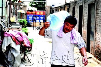 文/图 本报记者 李岩松 见习记者 金伟 在一家纯净水配送站门口见到房兆东时,他正在修电动三轮车。“电动车经常坏,这次胎被钉扎了,漏气。”今年40岁的他送水已经有五六年了,因为经常遇到电动车损坏的情况,经常修车的他已练就了一身本领,补胎等活都不在话下。 房兆东说,夏天是桶装水需求旺季,每天送一两百桶水很正常。每天的要水电话响个不停,休息的时间几乎没有。“早8点到晚6点多,一干就是一白天,休息的时候都没有。”房兆东告诉记者,一桶水40斤左右,他每天都要爬三四百层楼去送水。“爬六楼的时候最多,有一次去明珠花园送水,结果电梯停电,只能扛着一桶水爬了十楼。”对于送水工来说,衣服爬一次楼就湿透了,骑电车的时候又会被吹干,“这一整天,衣服就是湿湿干干,特别难受。” “我们这行,年龄大的干不动,年轻的又不愿意干,活太累。”擦了一下脸上汗水的方兆东说,扛着水爬楼的时候,腰和膝盖都疼,尤其是一次提两桶水上楼,就更辛苦了。每天下午1到3点,是最热的时候,这时候送水,“跟油煎似的”。有的小区保安不让电车进门,只让停在门岗,送起水来就更费力。 房兆东告诉记者,送水最怕的就是水送到了,家里却没人。“等你送到的时候,他关门走了,打电话也打不通。六楼你好不容易爬上去,还得把水再扛下来。”有时候客户还因此发脾气,责怪他们送得太慢,有时候还会投诉,因为送水的时候会遇到很多状况,生产、运输各环节等都会影响他们送水的速度,所以,大家非常希望市民能体谅。