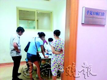 | 12日,毓璜顶医院手足口门诊家长正在问诊。 本报记者 宋佳 摄 |