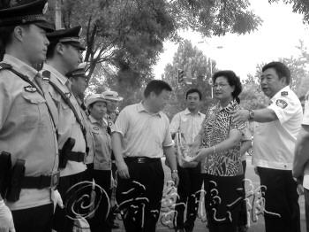 8月11日,市委书记、市人大常委会主任吴翠云冒着酷暑到大学路银座执勤点,看望慰问德城公安一线执勤民警。