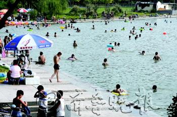 12日,菏泽最高气温37℃,依然居高不下,赵王河公园里前来野游的市民更是达到了最高峰。本报记者提醒市民在戏水消夏的同时,莫忘自身安全。