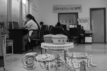 | 湾头村“目暖草编家居店”里,南边放着草编成品,北边有近10台电脑在线销售,基本做到足不出户卖出产品。